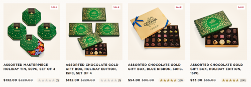 - Assorted Chocolate Gold Gift Box Holiday Edition 15 Piece Set of 4 $132 (reg. $220)